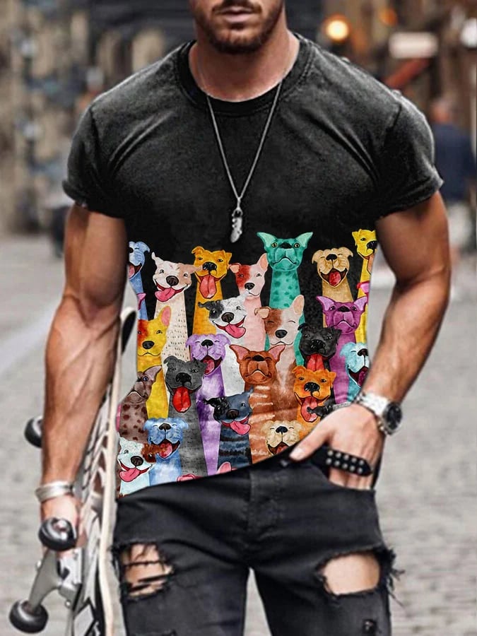 Men's Cute Dogs Print T-shirt
